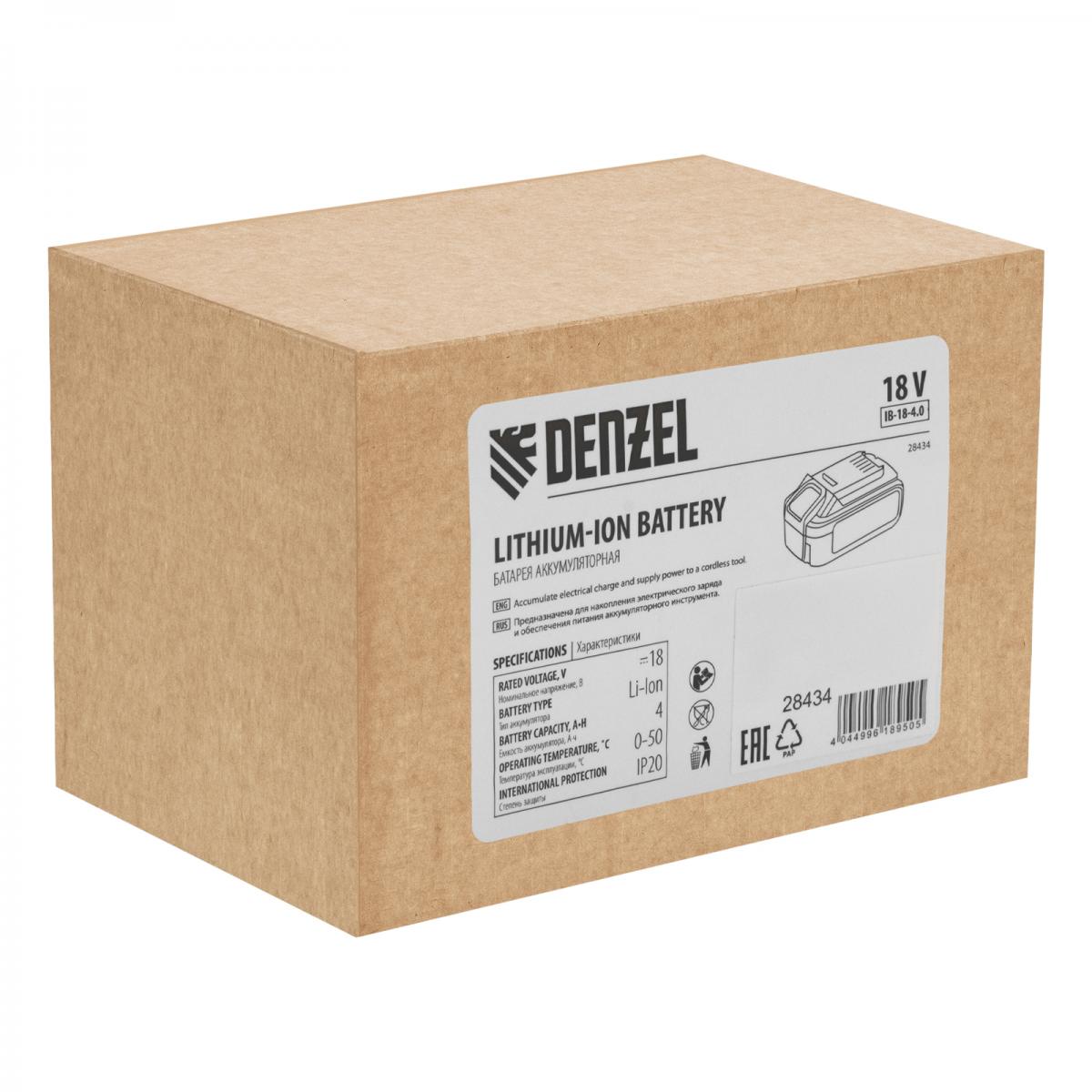 Батарея аккумуляторная IB-18-4.0, Li-Ion, 18 В, 4.0 А/ч Denzel