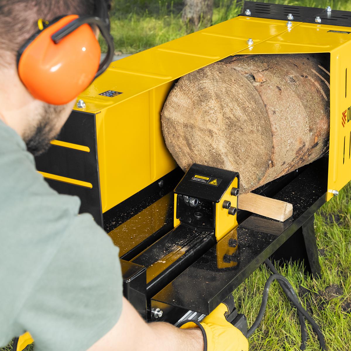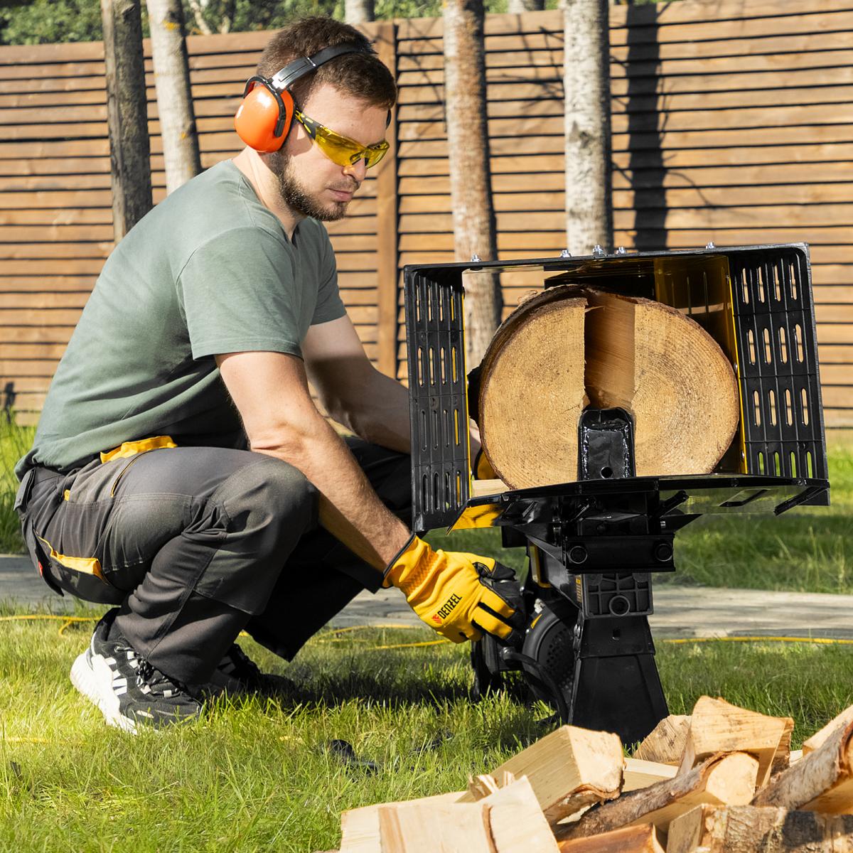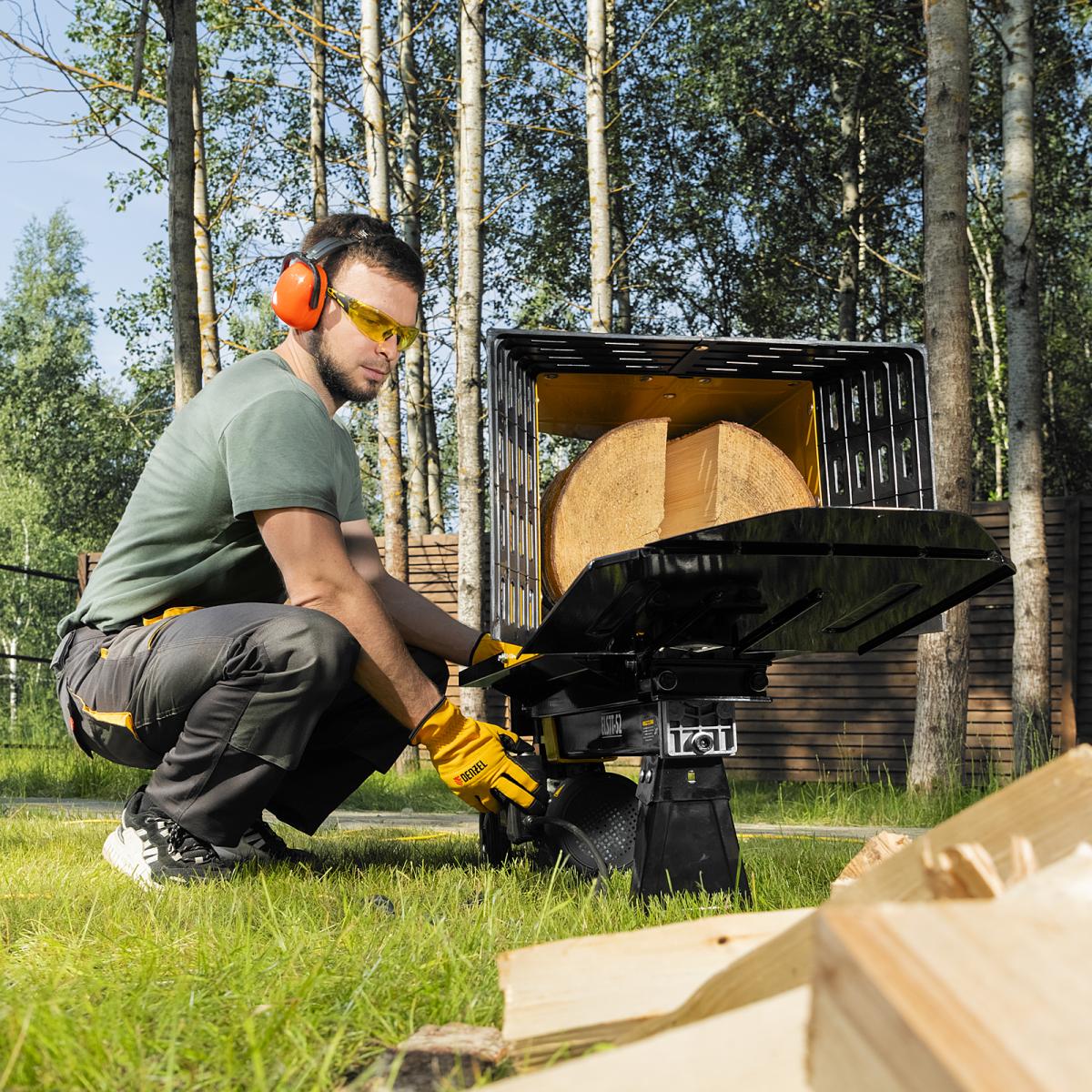 Дровокол электрический ELS7T-52, 2300 Вт, сила раскола 7т, макс. размеры полена D250 x 520 мм Denzel