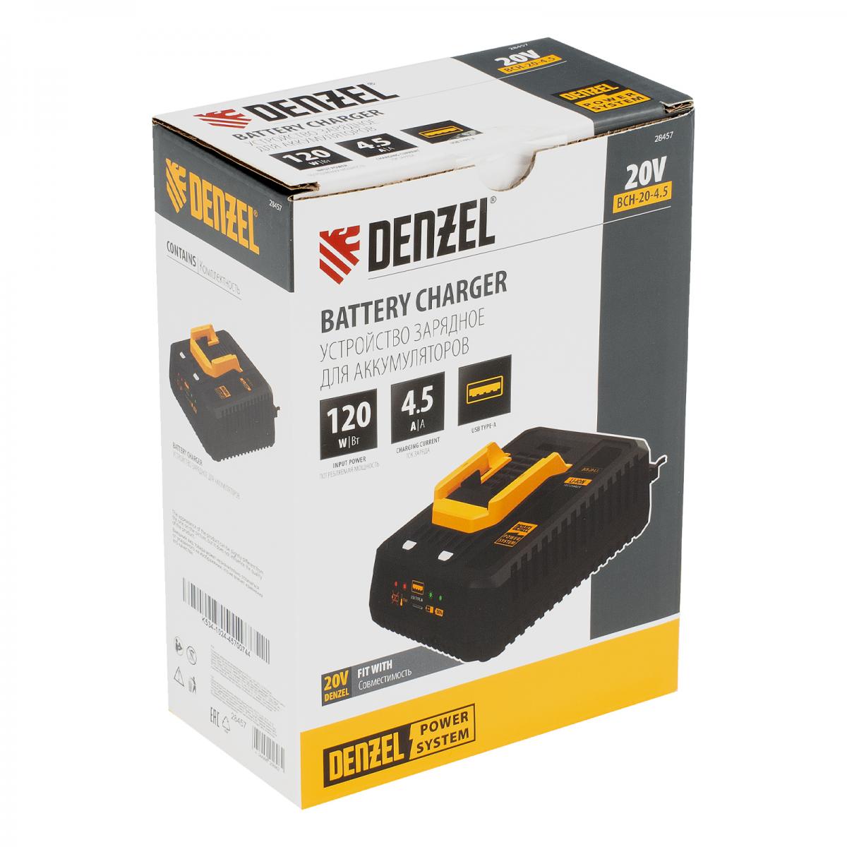 Устройство зарядное для аккумуляторов BCH-20-4.5, Li-Ion, 20 В, 4,5 А// Denzel