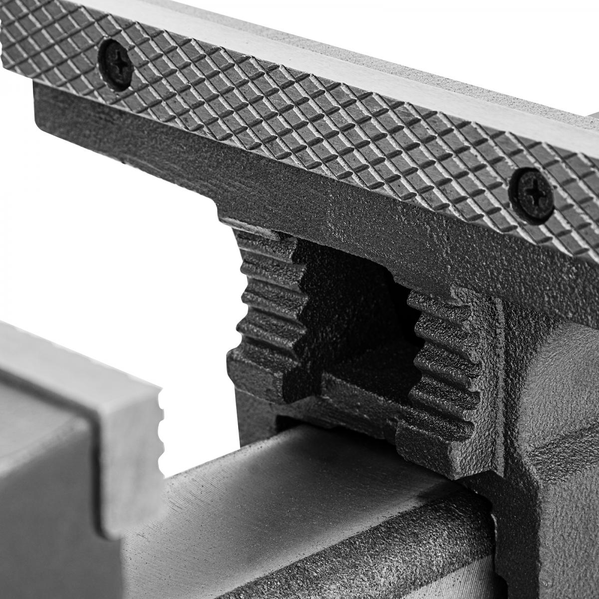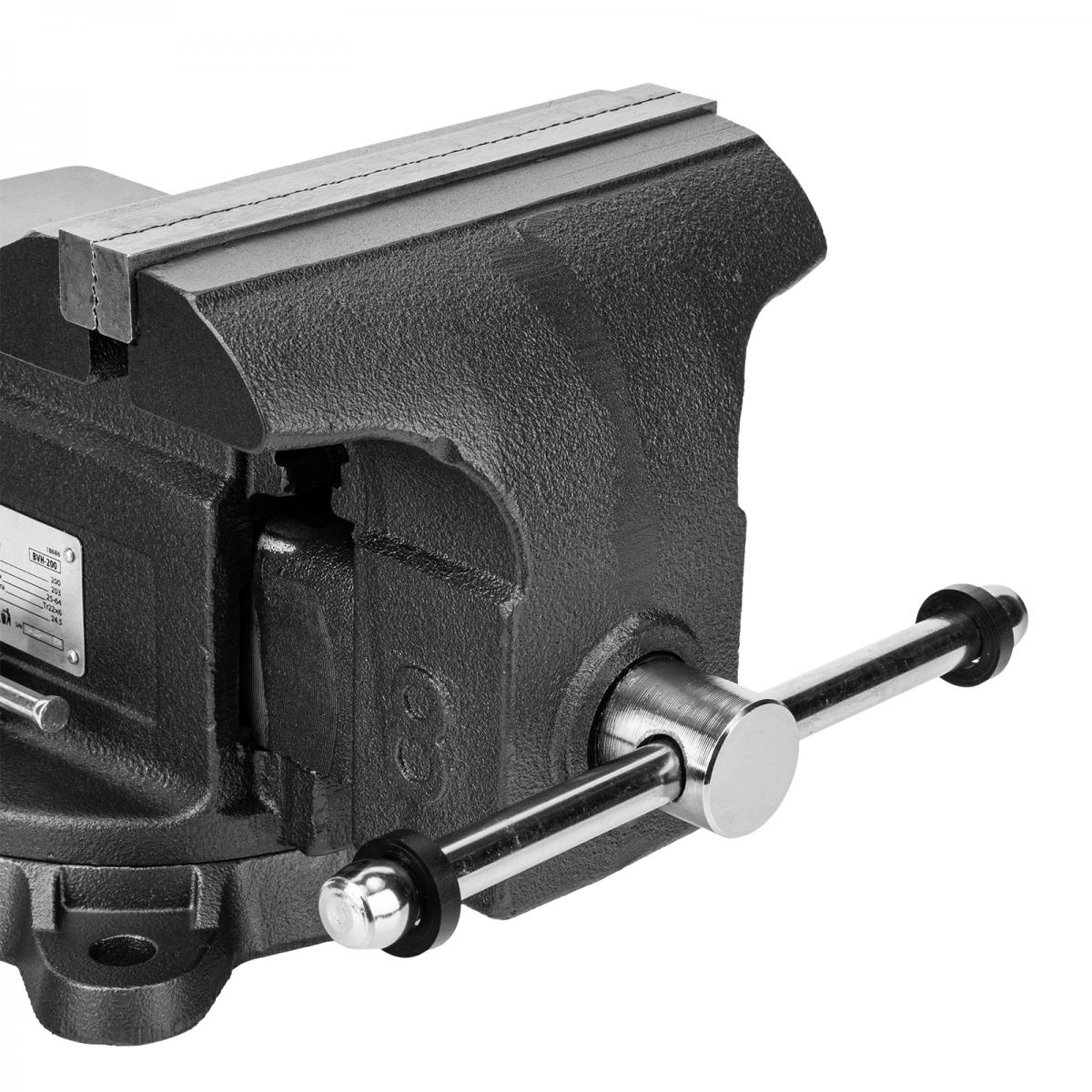 - Функциональность — тиски поворачиваются на 360°, что позволяет менять и выбирать позицию инструмента для удобной работы с заготовкой.