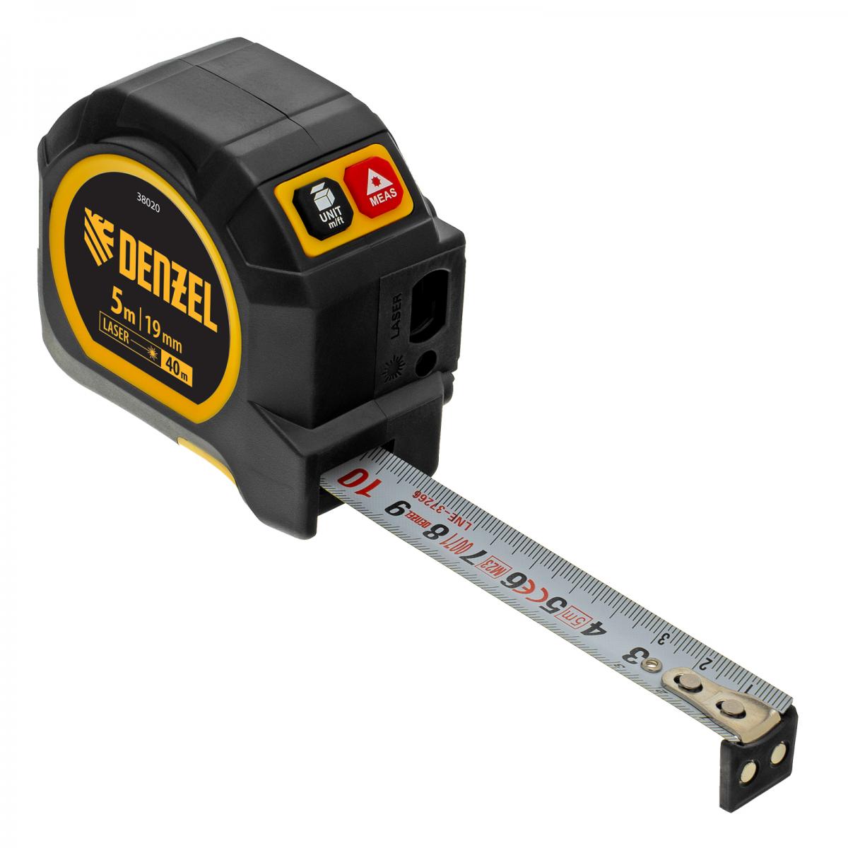 Лазерный дальномер с рулеткой LT-40, 5м x 19 мм, дальномер 40м, автомат. фиксация Denzel