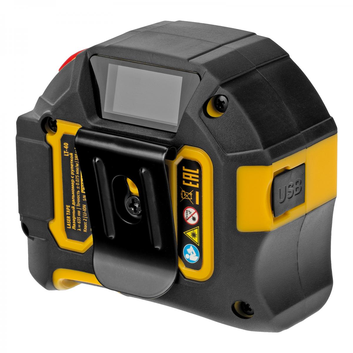 Лазерный дальномер с рулеткой Denzel LT-40 38020 — высокоточный многофункциональный инструмент для профессионалов и любителей. Предназначен для измерения расстояний от 0,2 до 40 метров при погрешности 0,075 мм/м, а также для определения площади и объема помещения. В инструмент интегрирована гибкая механическая рулетка длиной 5 метров, повышающая точность измерений. Li-Ion аккумулятор емкостью 380 мА·ч обеспечивает длительное время работы.ПреимуществаРешение широкого спектра задач — многофункциональный инструмент позволяет определять длину, площадь и объем.Два в одном — комбинация лазерного дальномера с рулеткой позволяет удобно переключаться между различными режимами измерений.Высокая точность — максимальная дальность измерений составляет 40 метров, погрешность сведена к минимуму (0,075 мм/м).Удобное использование рулетки — конструкцией предусмотрена автоматическая фиксация измерительного полотна, магнитный зацеп надежно фиксируется на металлических поверхностях.Удобный интерфейс — LED