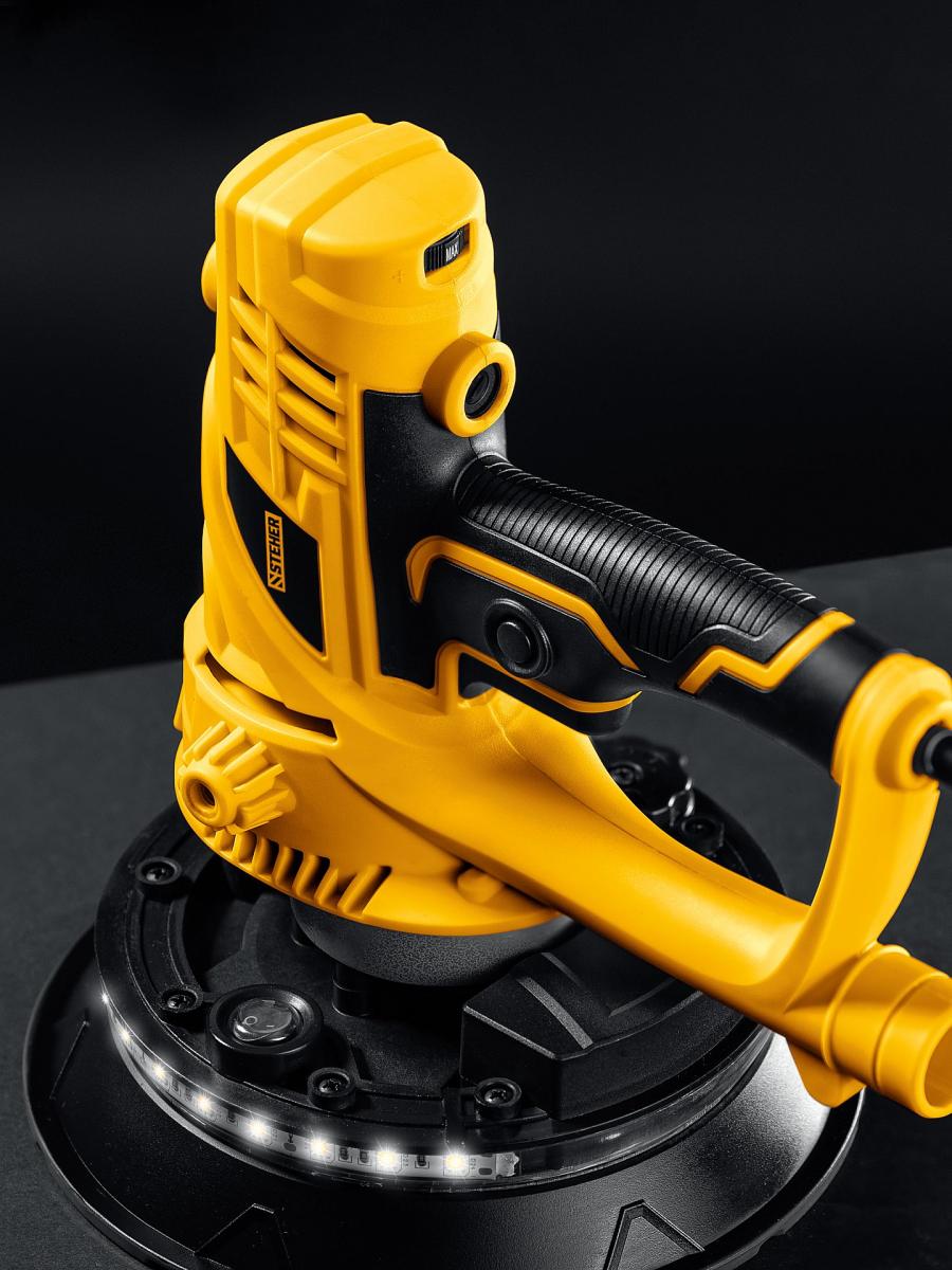 Ручной инструмент для работы с различными поверхностями. За счет регулировки оборотов подходит для обработки разных материалов (бетон, гипс, штукатурка, дерево). Обеспечивает минимальное количество пыли при работе благодаря возможности подключения пылесоса или принудительного отвода пыли в мешок