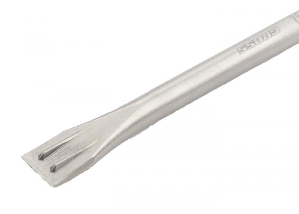 Зубило изготовлены из высокоуглеродистой легированной стали, имеющей высокую прочность и устойчивость к абразивному истиранию, твердость в районе режущей кромки 54-56HRC. Современная конструкция обеспечивает высокопроизводительное разрушение обрабатываемого материала, а так же предотвращает заклинивание инструмента.