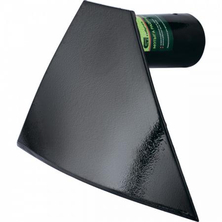 Мотыга малая радиусная. Диаметр тулейки 30 мм. Рабочая часть выполнена с небольшой дугой. Ширина 190 мм, длина 150 мм. Предназначена для рыхления, аэрации почвы и прополки. Конструкция, стойкая к механическим воздействиям. Рабочая часть выполнена из стали Ст3 и окрашена порошковой эмалью для предохранения от коррозии. Изгиб лезвия облегчает некоторые виды работ, например окучивание картофеля. По окончании работы необходимо очистить рабочую часть инструмента от остатков грунта.