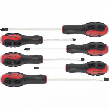 Набор ударных отверток 6 шт, PH1 х 75, PH2 х 100, PH3 х 150, SL5 х 75, SL6 х 100, SL8 х 150, CrV Matrix