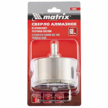 Сверло алмазное по керамограниту, 65 х 67 мм, трехгранный хвостовик Matrix