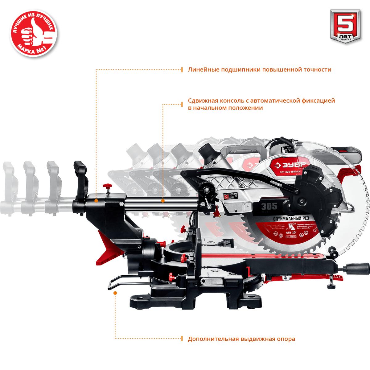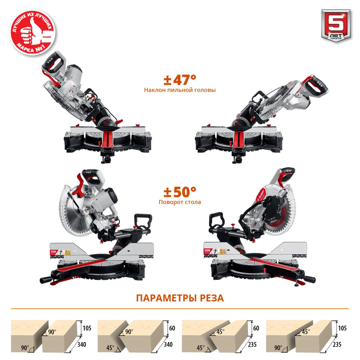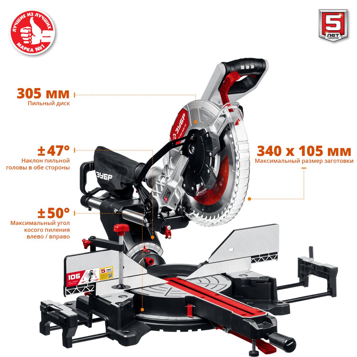 Мощная и функциональная пила с лёгкостью распиливает древесину, пластик и тонкостенный алюминий (при установке соответствующих дисков). Подвижная голова позволяет разрезать габаритные заготовки шириной до 340 мм Пила ЗУБР - достойный выбор и отличный помощник в работе