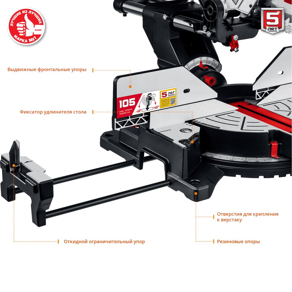 - Специальный сплав обеспечивает легкость и прочность конструкции и, соответственно, точность пиления