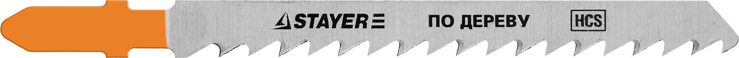 STAYER T101D, T-хвост., HCS сталь, по дереву/ДСП/ДВП, шаг зуба 4 мм (6TPI), раб. длина 75 мм, 2 шт, полотна для лобзика, Professional (15990-4)