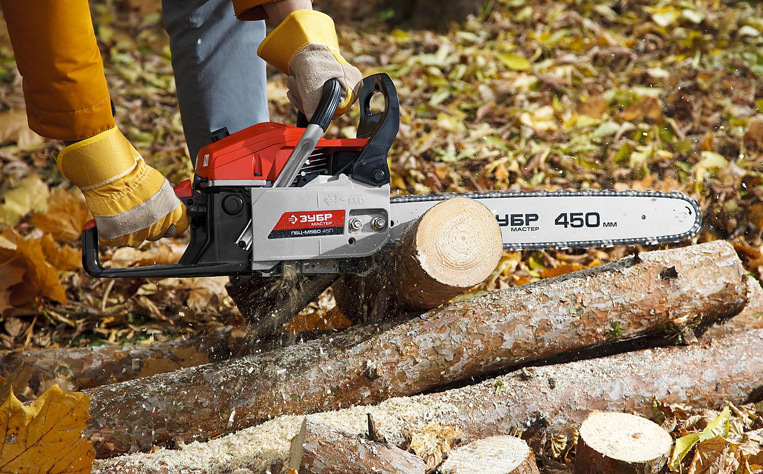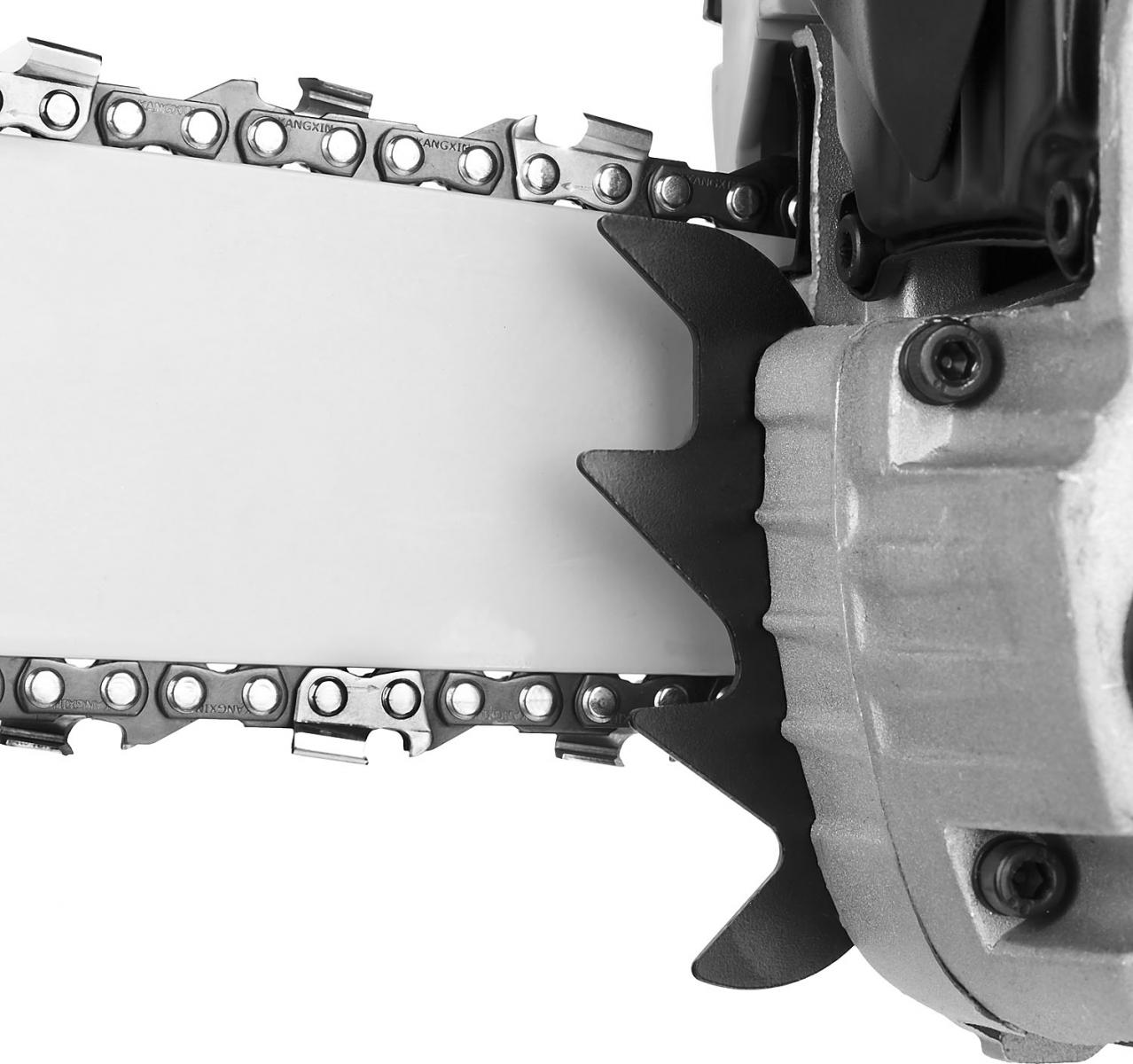- Тормоз мгновенного действия обеспечивает высокую безопасность работ, мгновенно останавливая пильную цепь в случае опасности