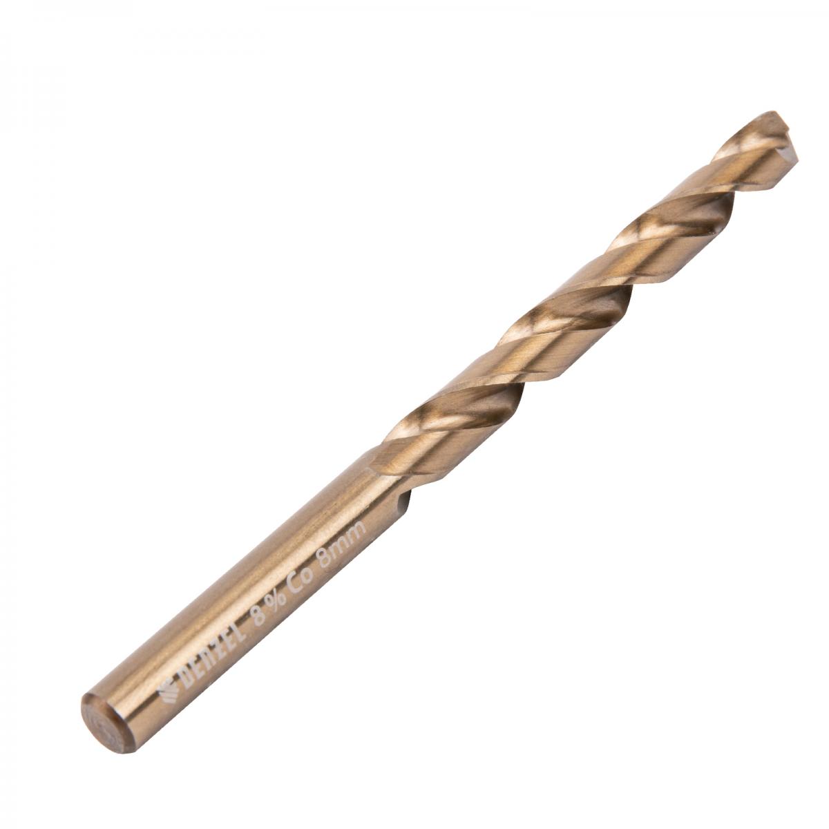 Кобальтовое сверло по металлу Denzel 71454 диаметром 8 мм, из стали HSS Co-8%, позволяет получать отверстия высокой точности в нержавеющей стали, цветных металлах, легированных и нелегированных сталях с пределом прочности до 1100 Н/мм2, а также в жестком пластике. Угол заточки 135° обеспечивает повышенную точность и чистоту сверления.