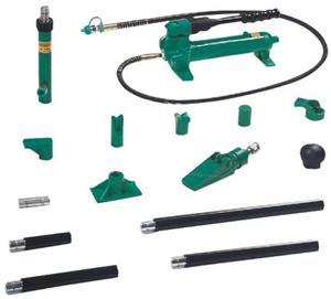 **Описание** Набор гидроинструмента (4т односкоростной) из 18 предметов. Набор рихтовочный представляет собой чрезвычайно компактный и удобный в эксплуатации комплект из гидравлического насоса, цилиндров, удлинителей и фигурных насадок, предназначенный для растягивания и рихтовки металлоконструкций. Умело комбинируя насадки и удлинители, можно добиться непревзойденной эффективности в производстве кузовных работ. Используется как любителями, так и профессионалами. Может быть доукомплектован гидроцилиндром обратного действия и стяжными насадками. **Область применения** Предназначен для проведения кузовных работ по восстановлению, в первую очередь, силовых элементов кузова автомобиля. **Порядок работы** 1\. Перед началом работы убедитесь в прочности крепления всех насадок и правильности их положения на ударном цилиндре, а также в надежности соединения шланга гидравлического насоса с ударным цилиндром или распределительным клином. 2\. Плотно закройте выпускной клапан поворотом его головки по часовой стрелке. 3\. Качая ручку насоса вверх и вниз, создайте давление в насосе. 4\. Для сброса давления откройте выпускной клапан поворотом против часовой стрелки. **ОБРАТИТЕ ВНИМАНИЕ:** Насос может использоваться как в горизонтальном, так и в вертикальном положении. При вертикальном положении насоса следите за тем, чтобы шланг был направлен вниз и не пережимался. **Требования безопасности** \* Никогда не превышайте предельно допустимую нагрузку ударного цилиндра. \* Не вытягивайте сверх нормы ударный цилиндр, так как можно заставить поршень выскочить из цилиндра. \* При вытаскивании соединительных деталей клапанов всегда вставляйте на их место пылезащитный колпачок для защиты системы от загрязнения. \* Если нагрузка на поршень ударного цилиндра приходится не по центру, работайте осторожно. Если для подачи давления в ударный цилиндр требуются дополнительные усилия, остановите работу и постарайтесь откорректировать положение системы таким образом, чтобы нагрузка в большей степени приходилась по центру. Это должно уменьшить требуемое усилие. \* Не бросайте тяжелых предметов на шланг и не позволяйте шлангу перекручиваться. \* Для предупреждения нанесения повреждений шлангу и соединительным частям, следите за тем, чтобы шланг всегда находился в свободном состоянии и не был прижат. \* Берегите оборудование от воздействия высоких температур и огня во избежание его повреждения или снижения эффективности его работы. **Обслуживание и уход** Когда рихтовочный набор не используется, гидравлический насос должен храниться с открытым выпускным клапаном. Гидравлический насос на заводе был заправлен высококачественным гидравлическим маслом. Используйте только специальное масло. **Устранение неисправностей** | Насос не работает | 1 | | --- | --- | | Насос не работает | 1 | | --- | --- | | Насос не создает давление | 2, 3 | | Насос не устойчив под нагрузкой | 2, 4 | | Насос не опускается полностью | 2, 5 | 1\. Загрязнение седел клапанов/износ уплотнительных прокладок. Замените старые уплотнительные прокладки. 2\. Воздушная пробка. Откройте заливную пробку и качните несколько раз ручку насоса и закройте выпускной клапан. Возвратите на место узел масломерного стержня. 3\. Масляной резервуар может быть переполнен или, наоборот, уровень масла в нем ниже нормы. Проверьте уровень ма