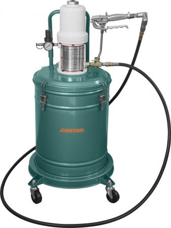 **Описание** Нагнетатели консистентных смазок применяются при проведении профилактических работ на узлах, агрегатах и механизмах автомобилей, станков и технологической оснсастки, оборудованных пресс- масленкой, для снабжения пар трения пластичными и консистентными смазочными материалами вязкостью NLGI 00/2 (ISO 460/150) в мастерских и цехах, оборудованных воздушной магистралью с давлением воздуха не ниже 6 атм. или компрессором, такой же мощности и необходимой производительности, персоналом, имеющим соответствующую квалификацию, знакомым с правилами техники безопасности, условиями эксплуатации и навыками работы с подобным оборудованием. **Область применения** Заправка нагнетателя может производиться заполнением емкости свободной формой рабочего материала или использованием с установкой стандартных емкостей («евроведро») до 18 и 25 кг для AE300072 и AE300073 соответственно. Подача смазки нагнетателем осуществляется с помощью центробежного насоса, имеющего привод от пневматического роторно-лопастного двигателя. Регулировка скорости подачи смазки осуществляется изменением частоты вращения привода насоса с помощью регулятора, установленного на корпусе насоса. **Технические характеристики** | Емкость | 30 л | | --- | --- | | Емкость | 30 л | | --- | --- | | Давление воздуха на входе | 4-9 кгс/см2 | | Степень нагнетания | 45:1 | | Давление рабочего материала при подаче | 180-405 кгс/см2 | | Производительность | 30 см3/сек | | Длина шланга | 3 м |