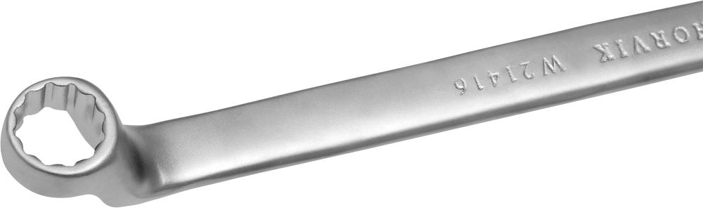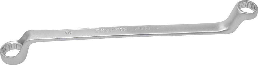 **Описание** Ключи гаечные кольцевые двусторонние коленчатые, более известные потребителям как накидные или просто кольцевые ключи – гаечные ключи, имеющие округлую форму рабочей части, что позволяет при проведении работ по откручиванию или закручиванию охватывать крепежное соединение со всех сторон. Тем самым, накидные ключи незаменимы при работе с тугими крепежными соединениями, позволяют за счет своей формы прилагать большие усилия, чем при работе с рожковыми ключами, имеющими только две грани контакта с гайкой или болтом, что и обуславливает популярность и востребованность кольцевых ключей на рынке. **Область применения** Применяются для работ с высоконагруженными резьбовыми соединениями. Изогнутая на 75°, коленчатая рабочая часть облегчает доступв труднодоступные места. Ключи изготавливаются из легированной хромованадиевой стали по стандарту DIN 838, в соотвествии с ГОСТ 2906-80. **Размеры**  | Артикул | Размер | B1, мм | В2, мм | L, мм | | --- | --- | --- | --- | --- | | Артикул | Размер | B1, мм | В2, мм | L, мм | | --- | --- | --- | --- | --- | | W21416 | 14х16 | 28,8 | 35,1 | 204,7 |
