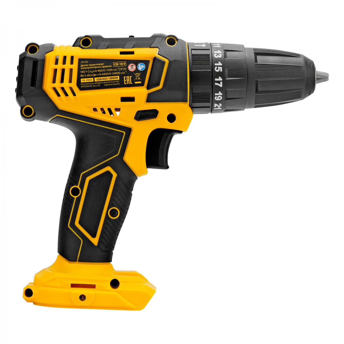 Дрель-шуруповерт аккумуляторная ударная CID-18-0, Li-Ion, 18 В Denzel